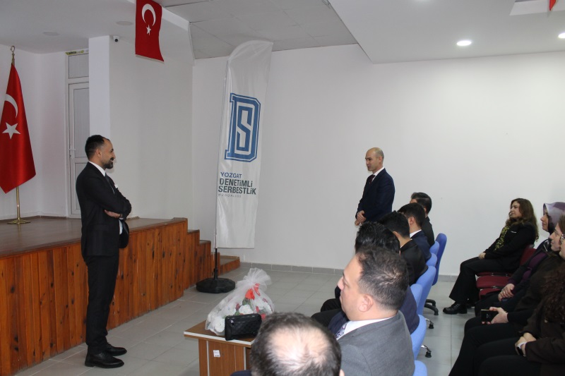 Denetimli Serbestlik Daire Başkanı Sayın Hüseyin ŞIK, Personel Tetkik Hakimi Tugay Can GÜRSAZ ve beraberindeki heyet Müdürlüğümüzü ziyaret etti. Çalışmalarımız hakkında bilgi alan Denetimli Serbestlik Daire Başkanı Sayın Hüseyin ŞIK, Personel Tetkik Hakim Sayın Tugay Can GÜRSAZ'a Yozgat Cumhuriyet Başsavcımız Enes Serdar AYDOĞAN tarafından plaket verildi.